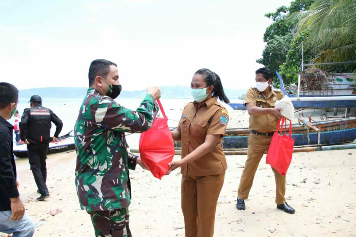 MANADO – Pendam XIII/Merdeka, Panglima Kodam (Pangdam) XIII/Merdeka Mayjen TNI Santos G Matondang bersama Gubernur Sulut Olly Dondokambey bersama Forum Komunikasi Pimpinan Daerah Provinsi Sulawesi Utara (Sulut) kembali menyerahkan bantuan berupa sembako kepada masyarakat yang berada di empat pulau masing-masing Pulau Gangga, Pulau Talisesi, Pulau Kinabuhutan dan Pulau Bangka. Selasa (26/5/2020).
