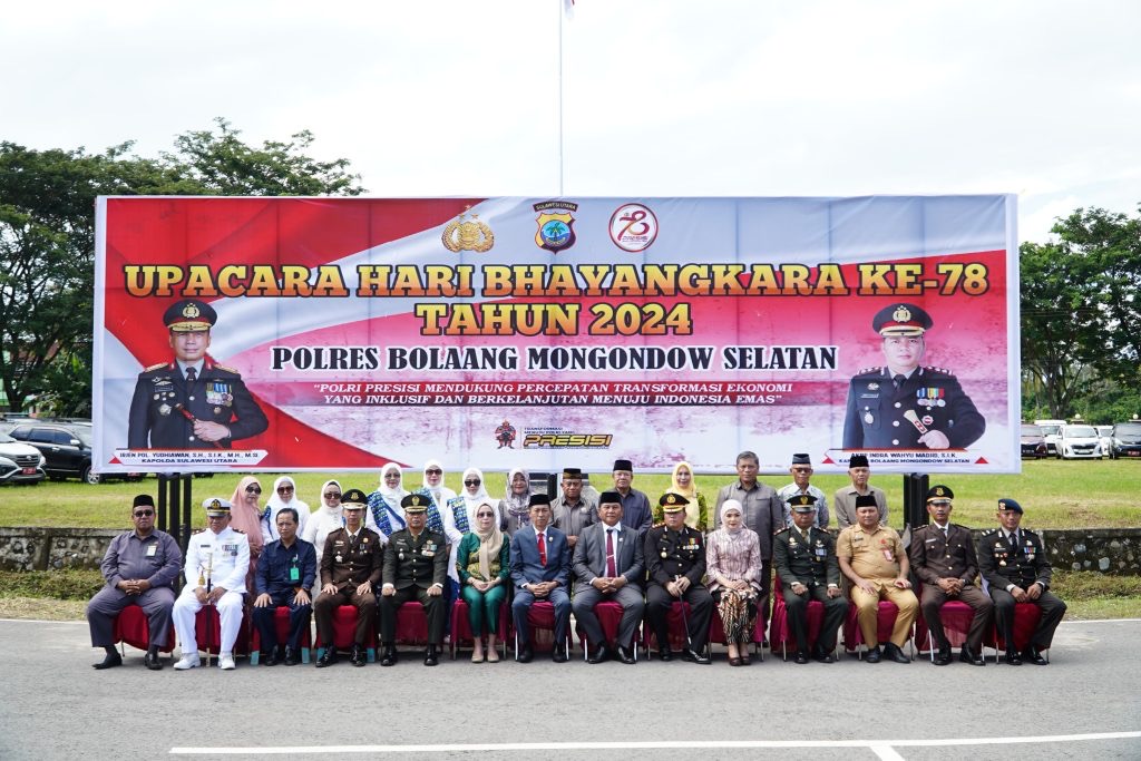 Dalam momen tersebut, Bupati Iskandar atas nama pemerintah dan masyarakat Kabupaten Bolsel mengucapkan selamat hari Bhayangkara ke-78 kepada Kapolres dan seluruh jajarannya. Bupati pun berharap agar Polri tetap menjadi garda terdepan dalam menjamin keamanan dan ketertiban yang kondusif di tengah masyarakat.