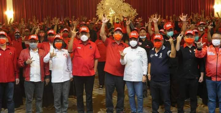 SULUT – PDI Perjuangan Sulawesi Utara (Sulut) melaksanakan Rapat Koordinasi (Rakor) Seluruh Struktural Dewan Pimpinan Cabang, PDI Perjuangan se-Kotamobagu, Bolaang Mongondow dan Bolaang Mongondow Timur, di Hotel Sutanraja Kotamobagu, Rabu (25/11/2020) malam.