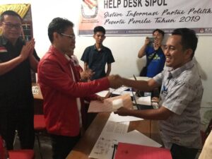 BOLMONG- Dewan Pengurus Cabang (DPC) PDIP Bolmong resmi mendaftar untuk ikut serta dalam Pemilu dan Pilpres 2019 mendatang ke KPUD, Rabu (11/10/2017).