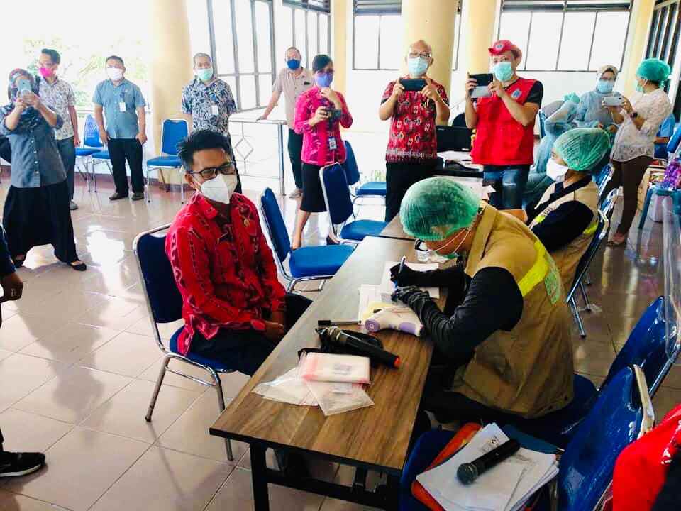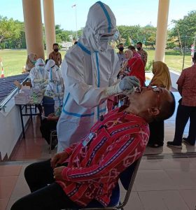Sejak pagi sekira pukul 08.30 WITA para pejabat eselon II dan III diambil sampel lendir dari dari dalam hidung maupun tenggorokan. Sekda Bolmong Tahlis Gallang termasul yang diswab.
