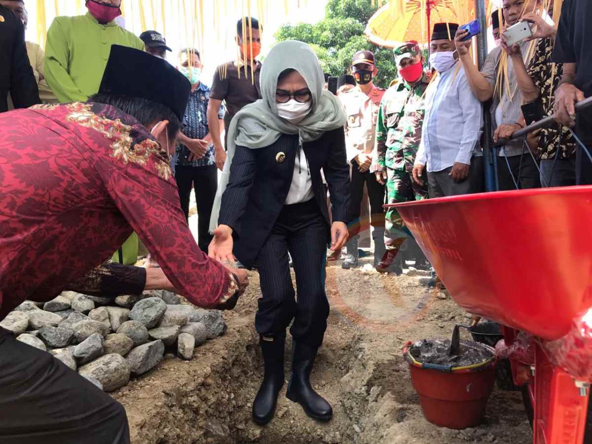 BOLMONG– Bupati Bolaang Mongondow (Bolmong) Yasti Soepredjo Mokoagow meletakan batu pertama pembangunan masjid Al-Hidayah, di Desa Lolak, Kecamatan Lolak, Jumat (14/8/2020).