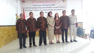 Penandatangan NHPD Walikota Kotamobagu Tatong Bara dan ketua KPUD Nayodo Koerniawan