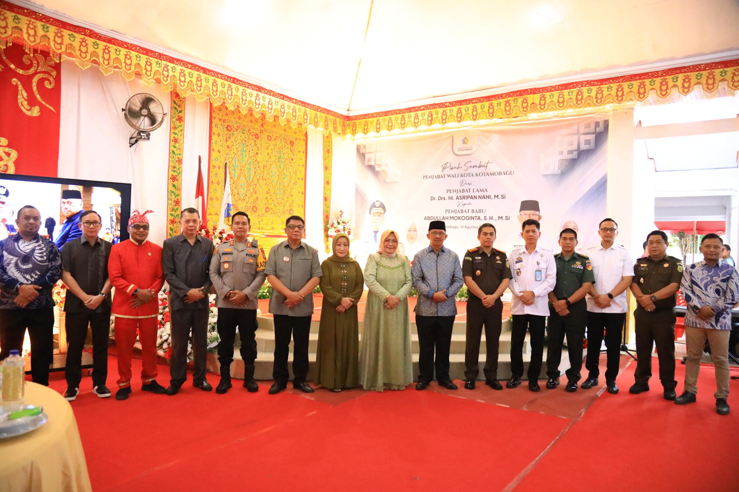KRONIK TOTABUAN, Kotamobagu – Pemerintah Kota Kotamobagu Gelar Pisah Sambut Penjabat Wali Kota dari Penjabat Lama, Dr. Drs. Hi. Asripan Nani., M.Si ke Penjabat Baru, Abdullah Mokoginta., S.H., M.Si, Rabu 14 Agustus 2024, Rumah Dinas Wali Kota Kotamobagu, Jalan Ahmad Yani, Kelurahan Kotamobagu.