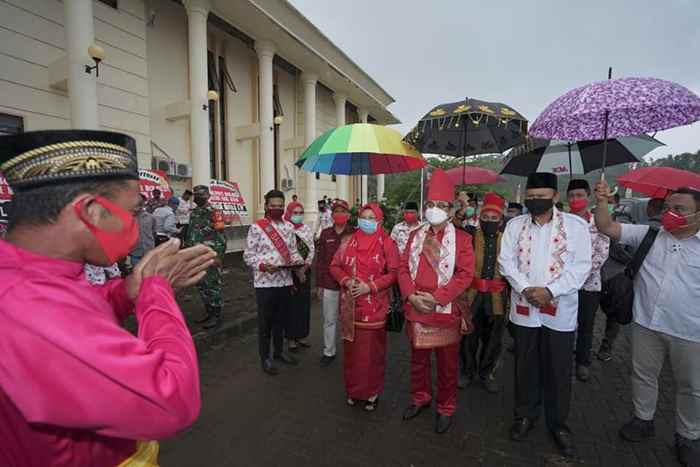 Penjabat Sementara Bupati Bolsel Disambut Dengan 4 Adat Daerah