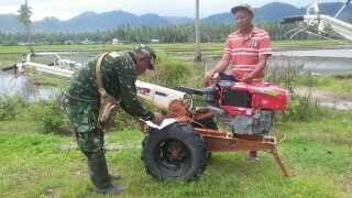 “hal tersebut memerlukan langkah-langkah yang tepat dan cepat agar program pemerintah tentang ketahanan pangan dapat berjalan sesuai yang kita harapkan,” Ucap Plh Danramil di sela-sela kegiatan memeriksa Alsintan.