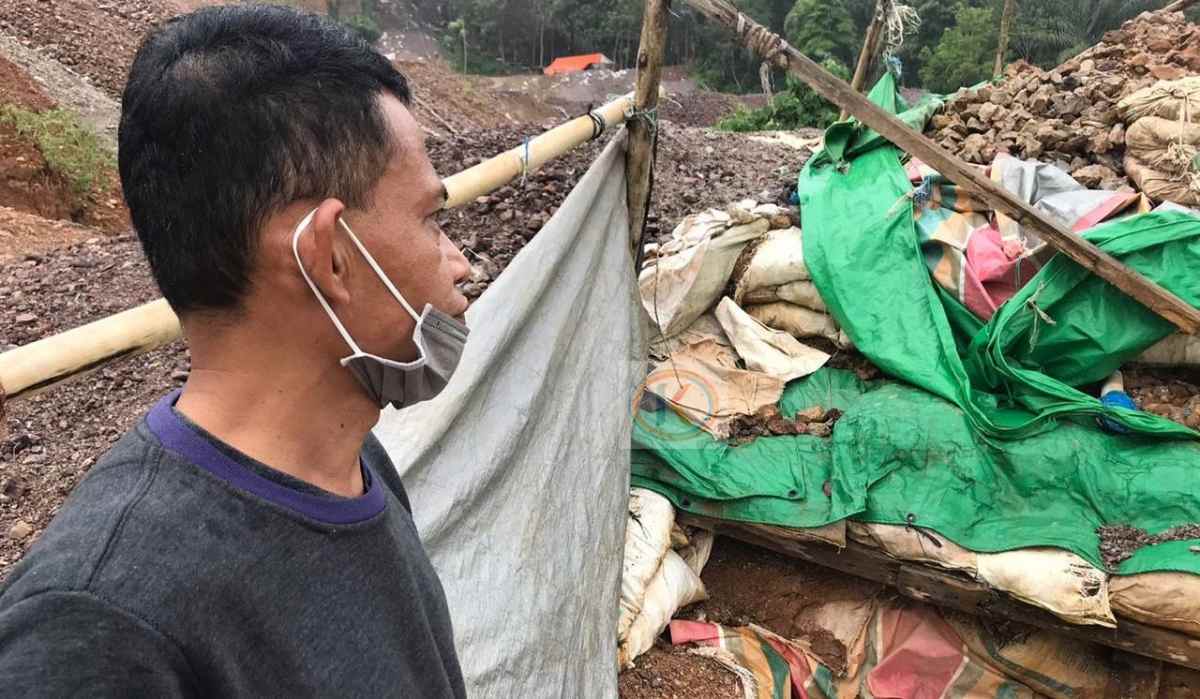 “Hanya di sini kami bisa dapat uang untuk menafkahi istri dan anak di rumah,” ucap salah satu penambang yang sedang melipat terpal robek, sembari mengarahkan telunjuknya ke tanah dia berdiri.