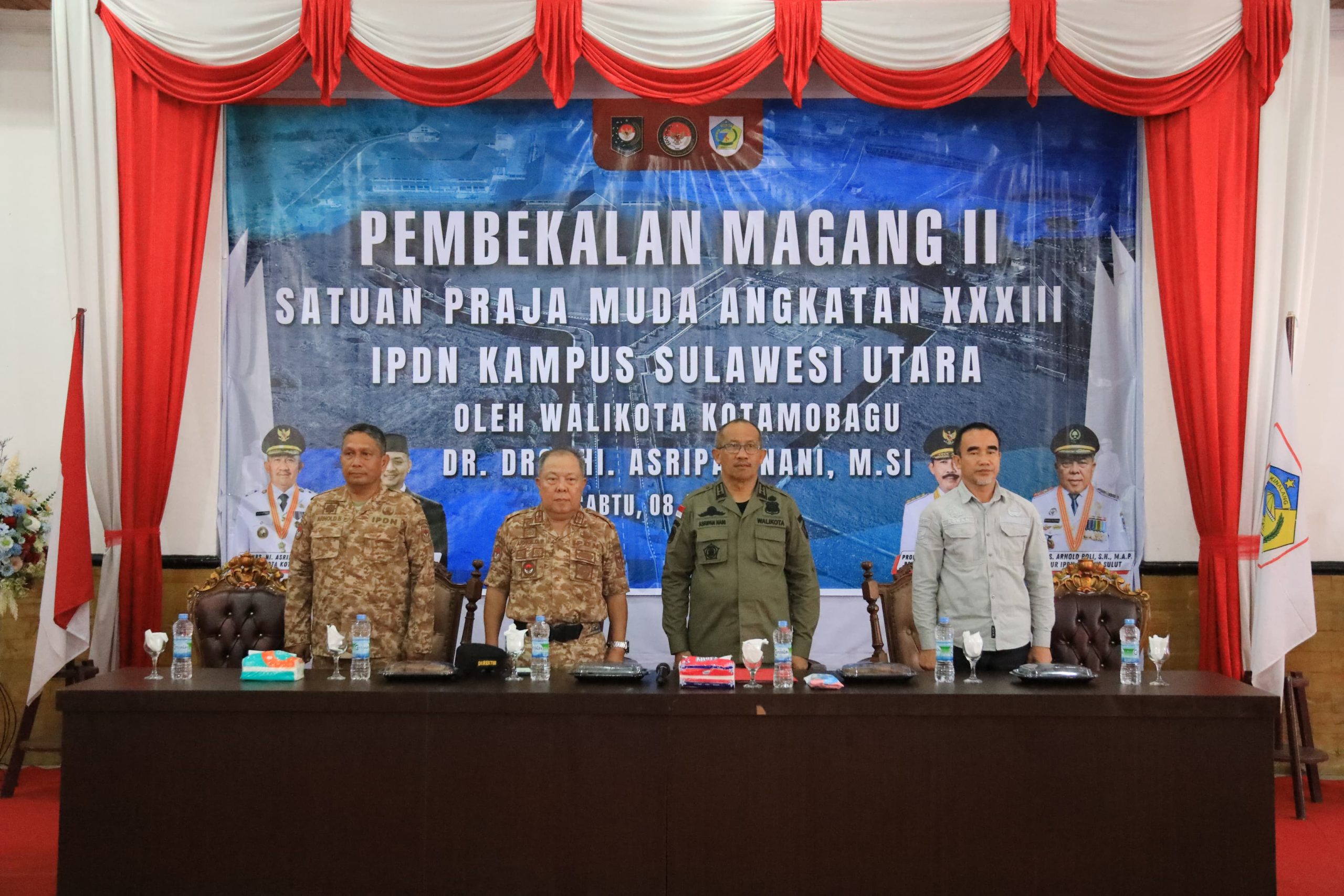 Pj. Wali Kota Kotamobagu pada kesempatan tersebut menyampaikan ucapan selamat melaksanakan Magang pada seluruh Satuan Praja Muda Angkatan XXXIII IPDN Kampus Sulawesi Utara dilingkungan Pemerintah Daerah Kota Kotamobagu.