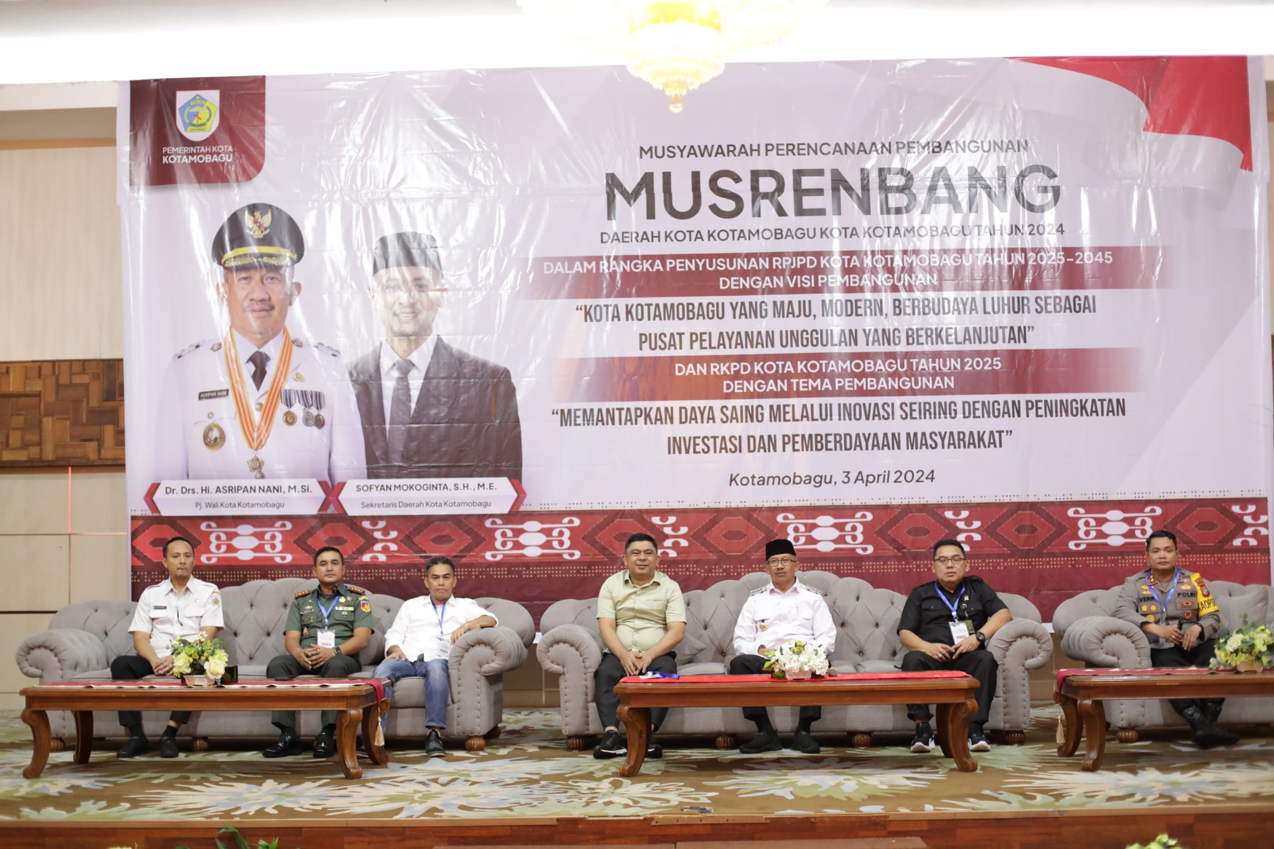 KRONIK TOTABUAN, Kotamobagu – Rabu 3 April 2024, dalam sebuah acara yang diadakan di Hotel Sutanraja Kota Kotamobagu, Pj. Wali Kota Kotamobagu, Dr. Drs. Hi. Asripan Nani, M.Si, secara resmi membuka Musyawarah Perencanaan Pembangunan (Musrenbang) dalam rangka penyusunan Rencana Kerja Pemerintah Daerah (RKPD) Kota Kotamobagu tahun 2025 dan Rencana Pembangunan Jangka Menengah Daerah (RPJPD) Kota Kotamobagu tahun 2025-2045.