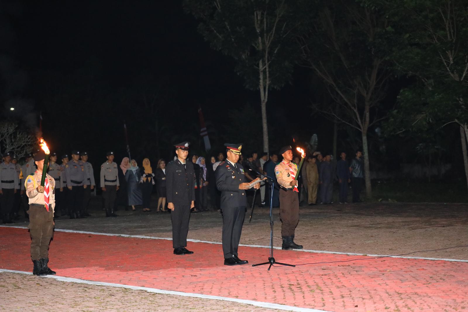 Bertindak sebagai Inspektur Upacara pada Upacara Apel Kehormatan dan Renungan Suci yang merupakan rangkaian dari peringatan Hari Ulang Tahun ke – 79 Kemerdekaan Republik Indonesia tersebut adalah Kapolres Kotamobagu, AKBP. Irwanto., S.I.K., M.H., .