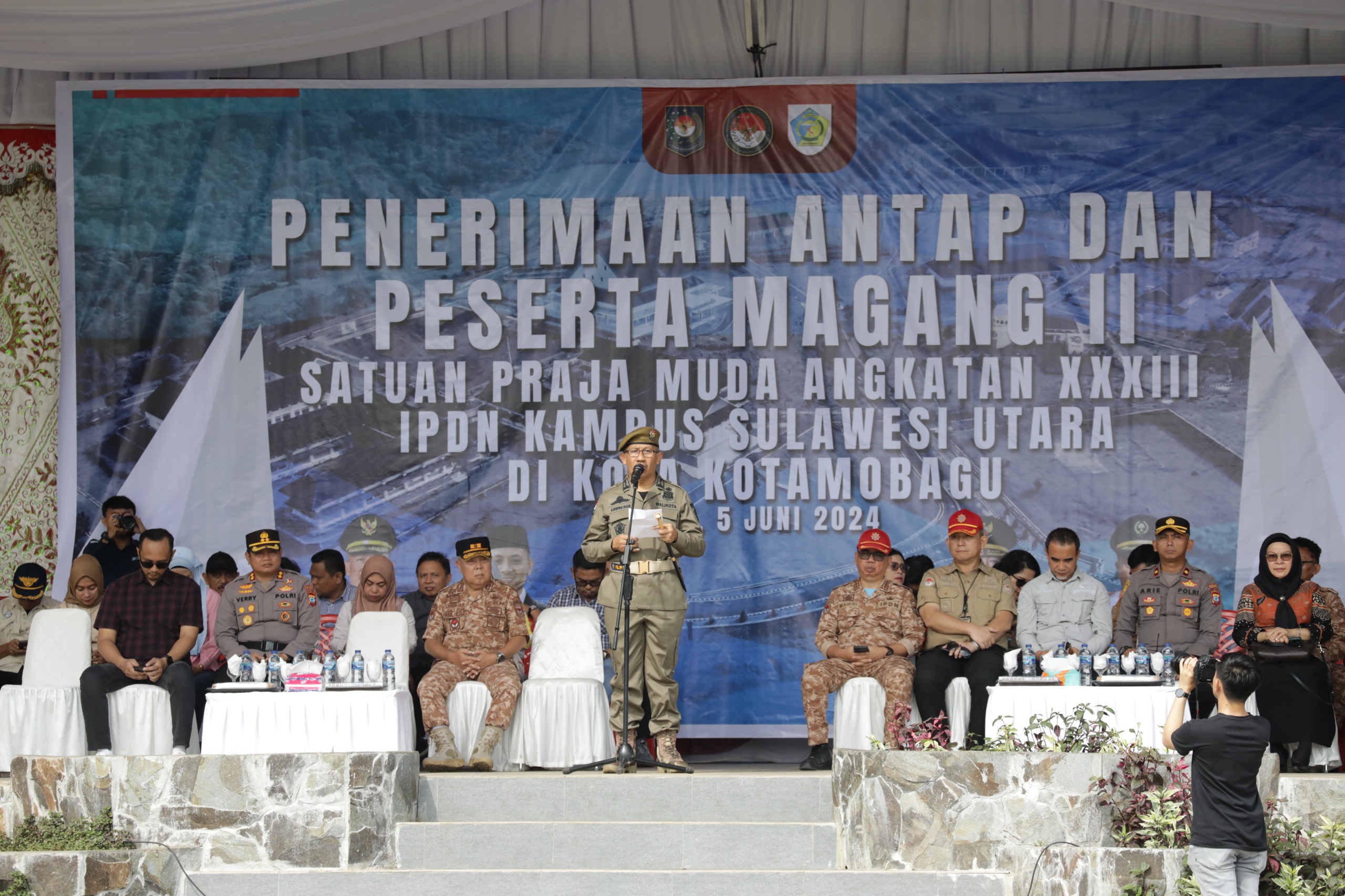 Turut hadir, Kapolres Kotamobagu, AKBP. Dasveri Abdi, Wakapolres Kotamobagu, Kompol. Arie Prakoso, Sekda Kotamobagu, Sofyan Mokoginta, Direktur IPDN Kampus Sulawesi Utara, Arnold Poli, Kepala Satuan Magang II Satuan Praja Muda Angkatan XXXIIII IPDN Kampus Sulawesi Utara, Arnold Ferdinan Bura, para Asisten, para Pimpinan Perangkat Daerah dan peserta Magang II Satuan Praja Muda Angkatan XXXIII IPDN Kampus Sulawesi Utara.(Reto)