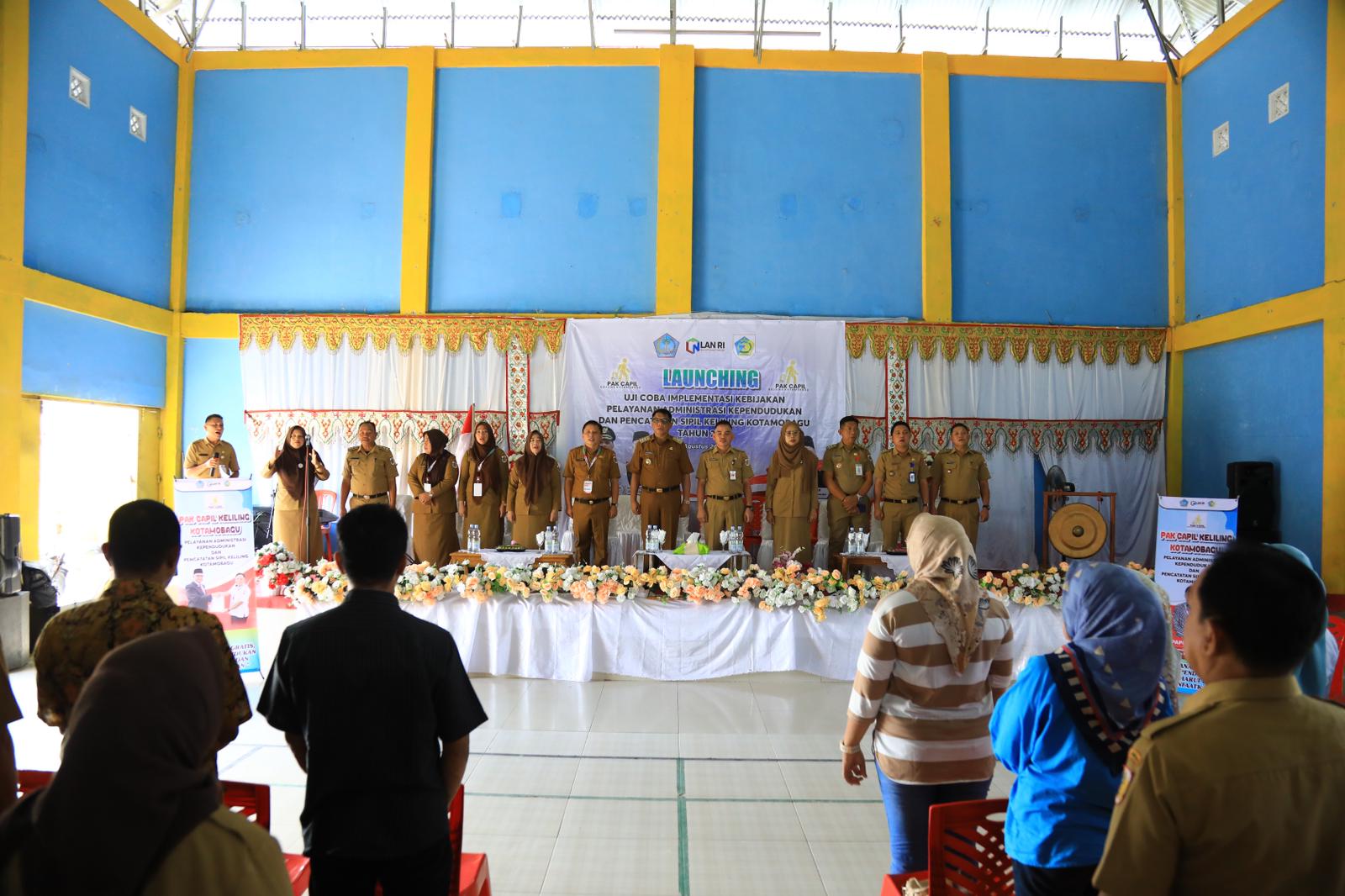 KRONIK TOTABUAN, Kotamobagu – Pj. Wali Kota Kotamobagu, Abdullah Mokoginta., S.H., M.Si Melakukan Launching Uji Coba Implementasi Kebijakan Pelayanan Administrasi Kependudukan dan Pencatatan Sipil Keliling (Pak Capil Keliling) Kotamobagu Tahun 2024, Senin 26 Agustus 2024, Balai Desa Kopandakan Satu Kecamatan Kotamobagu Selatan.