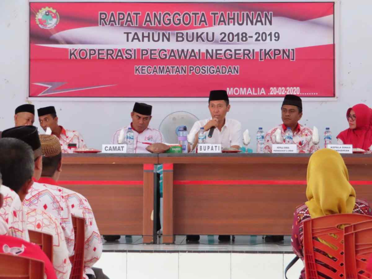 BOLSEL – Pelaksanaan Rapat Anggota Tahunan (RAT) Koperasi Pegawai Negeri Bina Mandiri (KPNBM) Kecamatan Posigadan tahun buku 2018-2019, dilaksanakan Kamis (20/2/2020) di Aula Kantor Camat Posigadan.