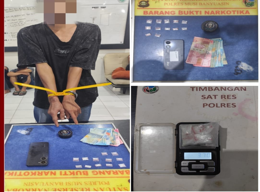 Penangkapan pertama dilakukan, 5 November 2025 pukul 19.30 WIB. Petugas mengamankan Indra Dwi Ariansyah (22), warga Desa Karang Agung Kecamatan Lalan, di sebuah kontrakan di Kelurahan Keluang. Dari tangan pelaku, polisi menyita 13 paket sabu seberat 4,41 gram, lima butir pil berlogo LV dan Maserati, uang tunai Rp500 ribu, serta satu unit ponsel.