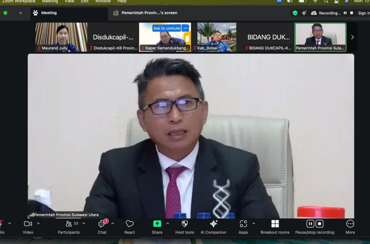 Hal ini sebagaimana dikatakan Sekprov Sulut Tahlis Gallang, saat membuka Pendampingan Penyusunan Rencana Aksi Peta Jalan Pembangunan Kependudukan Kabupaten/Kota Tahun 2025–2029, yang digelar secara daring bertempat di ruang kerja Sekprov, Senin 10 November 2025.