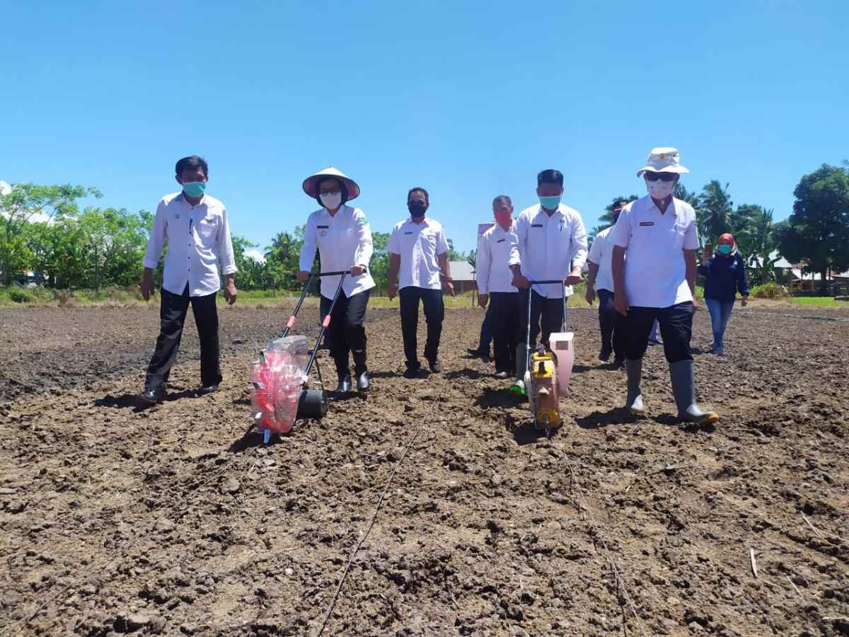 Setelah menyerahkan bantuan sembako secara simbolis, Bupati Yasti juga menghadiri kegiatan gerakan tanam yang disertakan penyerahan bantuan untuk mendukung ketahanan pangan dalam rangka percepatan penanganan dampak Covid-19 di Kabupaten Bolmong di Desa Lalow.