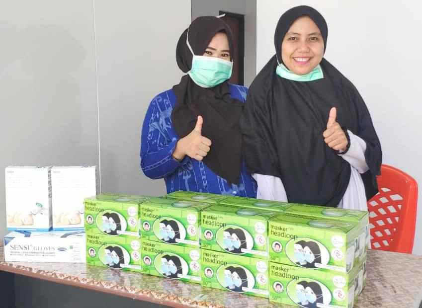 Mereka datang memberi donasi atau sumbangan logistik pendukung medik seperti thermo gun, masker, hanscoon on kepada petugas medis.