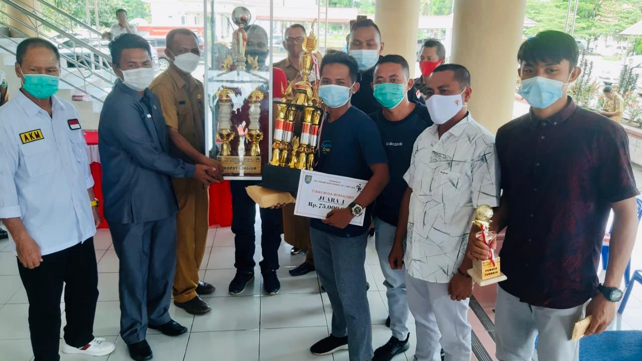 Acara penutupan dan penyerahan hadiah kepada para tim juara dilakukan di kantor bupati dengan menerapkan protokol kesehatan.
