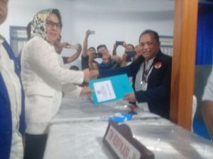 Tatong Bara saat menyerahkan berkas pendaftaran kepada Ketua tim penjaringan DPD II PAN