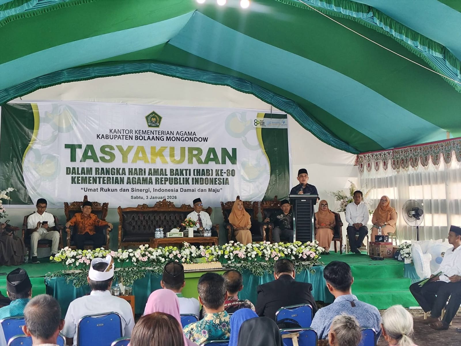KRONIK TOTABUAN – Kantor Kementerian Agama (Kemenag) Kabupaten Bolaang Mongondow (Bolmong), menggelar tasyakuran puncak Hari Amal Bakti (HAB) Kemenag RI ke-80, Sabtu (3/1/2026).