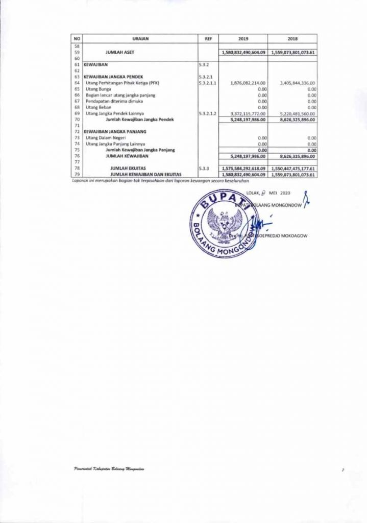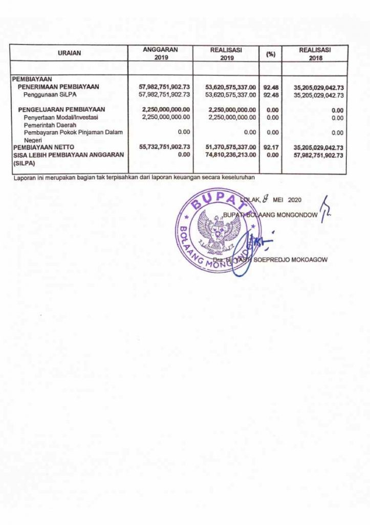 Berikut LKPD Bolmong Tahun 2019: