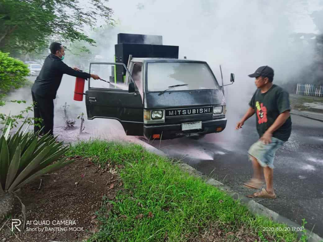 KOTAMOBAGU– Sebuah mobil pikap Mitsubishi L300 DB 8208 K nyaris terbakar di Jalan Paloko Kinalang, Kotamobagu, Selasa (20/10/2020).