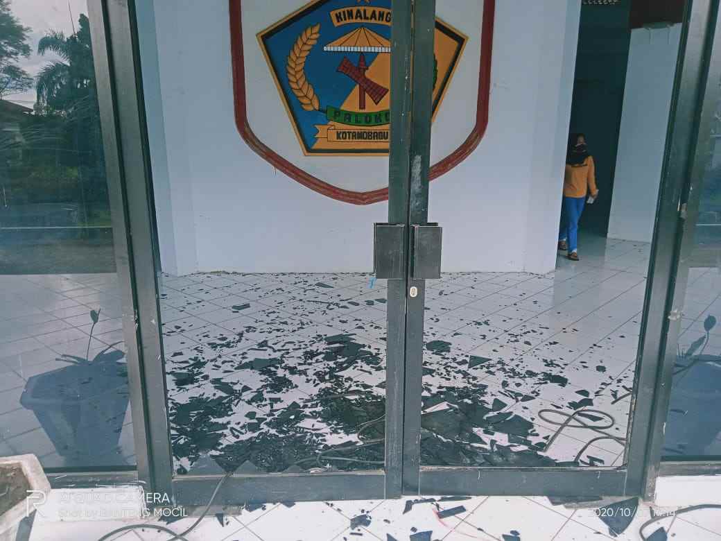 Kaca pintu kantor dipecahkan, meja, kursi, microphone, hingga pot bunga tak ketinggalan dirusak mahasiswa.