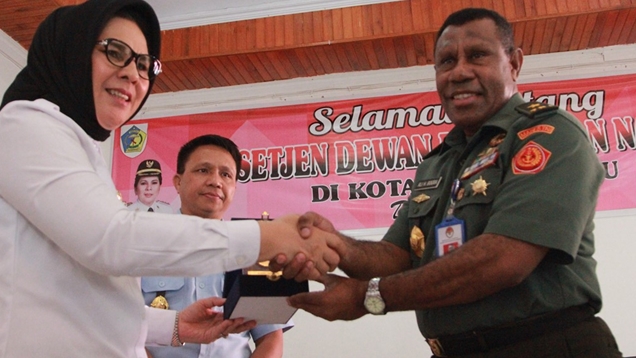 KOTAMOBAGU— Walikota Kotamobagu Tatong Bara menyambut kedatangan Tim Dewan Ketahanan Nasional (Wantannas) yang dipimpin Brigjen TNI Ali Hamdan Bogra saat melakukan kunjungan kerja ke Kotamobagu Rabu (4/10/2017).