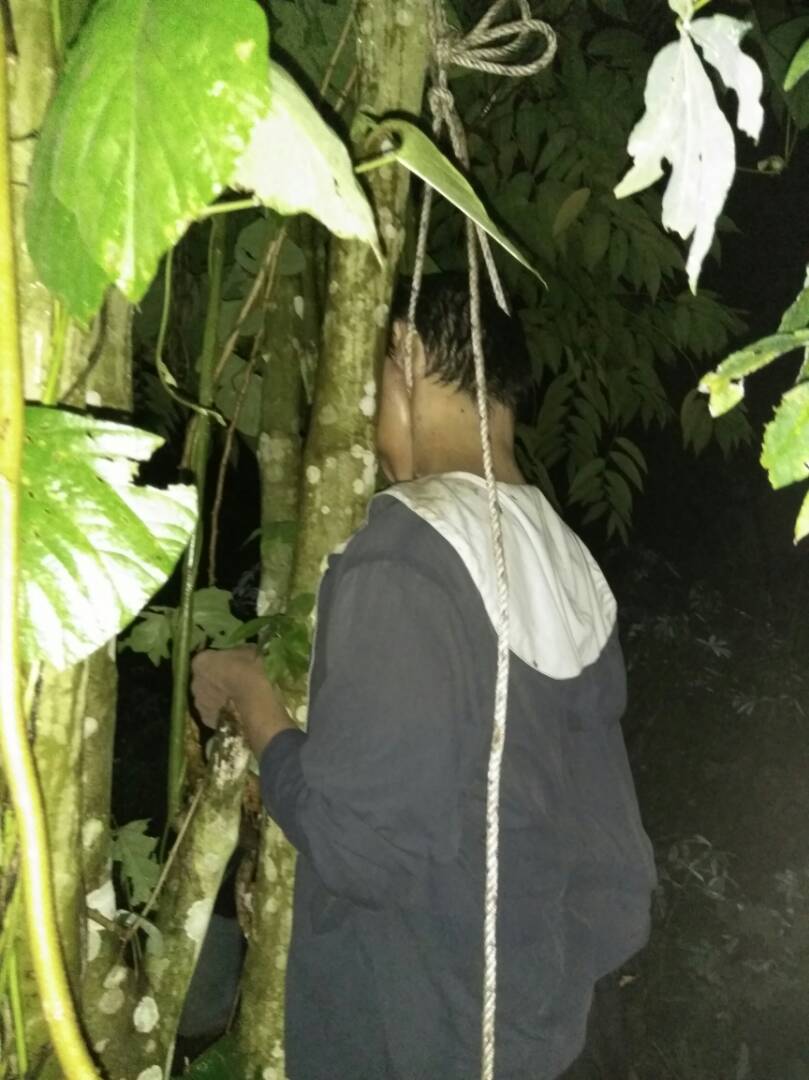HUKRIM– EP alias Endi, 46, warga RT 24, Kelurahan Gogagoman, Kecamatan Kotamobagu Barat, ditemukan tewas tergantung di pohon sirih di kebun miliknya, sekira 200 meter dari rumahnya, Kamis (4/5), pukul 23.00 Wita. Terdapat juga luka di leher yang diduga ditusuk dengan benda tajam.
