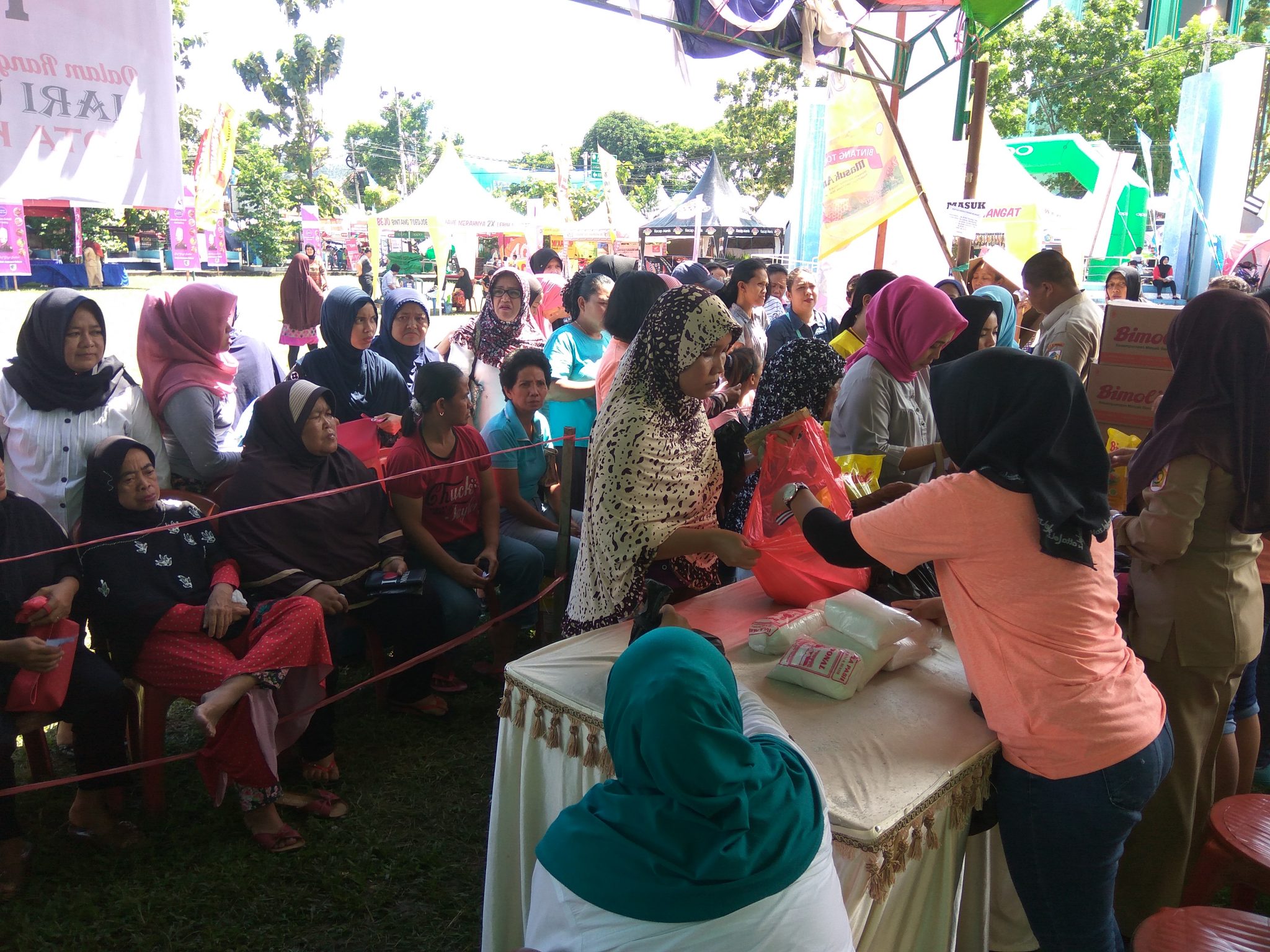 KOTAMOBAGU– Pasar murah digelar Pemkot Kotamobagu melalui Dinas Perdagangan Koperasi dan Usaha Kecil Menegah (Disperdagkop dan UKM), di lokasi Kotamobagu Expo, Kelurahan Molinow, Kecamatan Kotamobagu Barat, dipadati warga. Mereka antusias warga untuk mendapatkan sembako dengan harga murah.