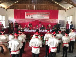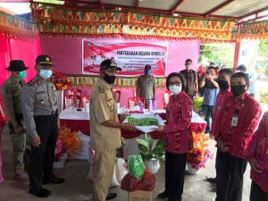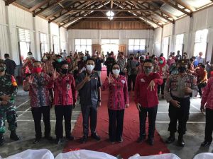 Titik pertama lokasi penyerahan tepatnya di Desa Tiberias, Kecamatan Poigar. Rombongan Bupati disambut langsung oleh regu masamper sebagai ucapan selamat datang. Dan selanjutnya dilanjutkan mengikuti Video Conference (Vidcon) upacara peringatan hari Kesaktian Pancasila, yang diketahui selalu digelar setiap tahunnya pada tanggal 1 Oktober.