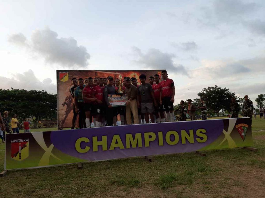 BOLMONG – PS Labuan Uki A meraih gelar juara Turnamen Bogani Cup IV 2019 setelah menundukkan PS Jayasakti dengan skor tipis 2-1, pada laga final yang dihelat di lapangan sepakbola markas Yon Armed Bogani di Desa Dulagon Lolak, Selasa (21/1) sore kemarin.