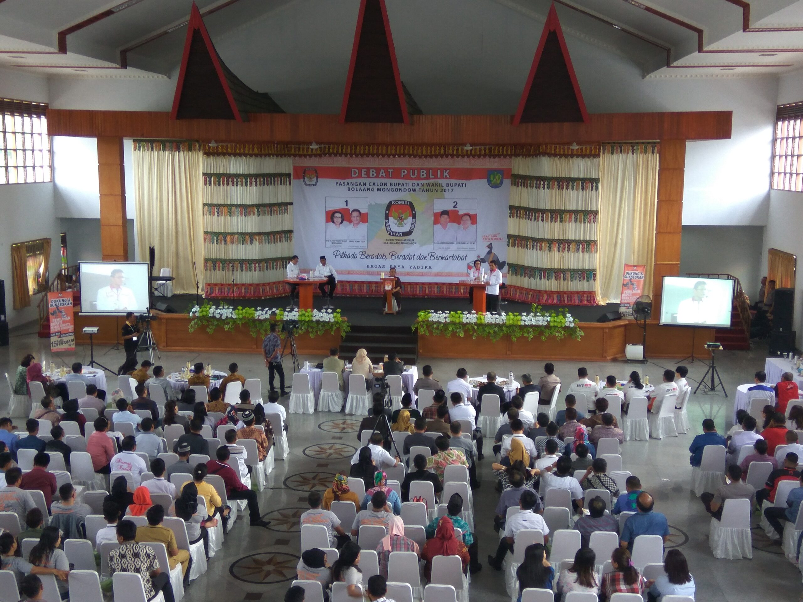 KOTAMOBAGU– Debat publik kandidat calon Bupati dan wakil Bupati Bolmong tahap pertama yang digelar KPUD sukses. Debat yang mengangkat tema hukum, politik dan tata pemerintahan digelar di Gedung Bagas Raya Yadika, Desa Kopandakan II, Kecamatan Lolayan, Selasa (24/1).